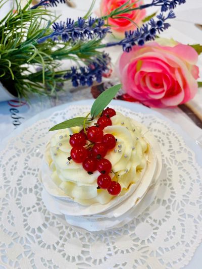 Пирожное «Павлова» — воздушная меренга с крем-чизом и ягодами. Нежная кора хрустит при каждом укусе, а кремовая начинка дарит сливочный вкус.
